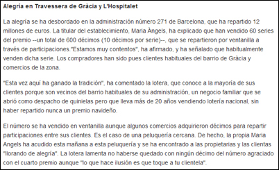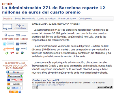 - 4º Premio Lotería de Navidad - 22/12/2010